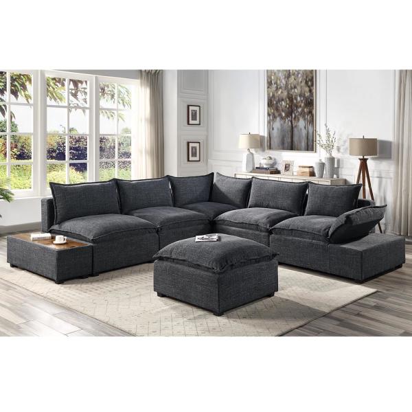 Sectional Sofa with Storage Console and Adjustable Arm, Dark Gray Linen Images |