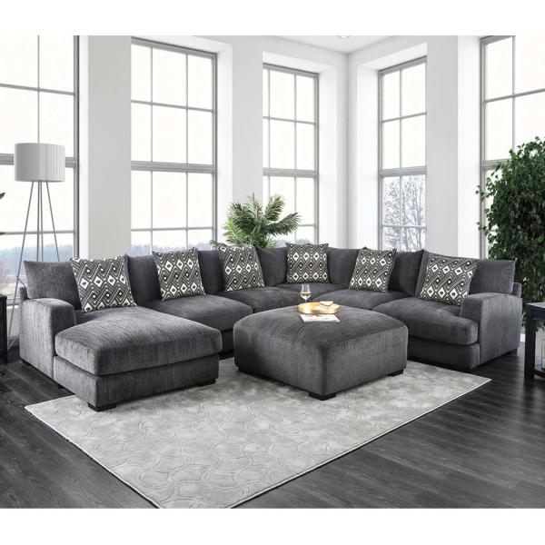 Sectional Sofa with Pillows and Memory Foam, Gray Chenille Images |